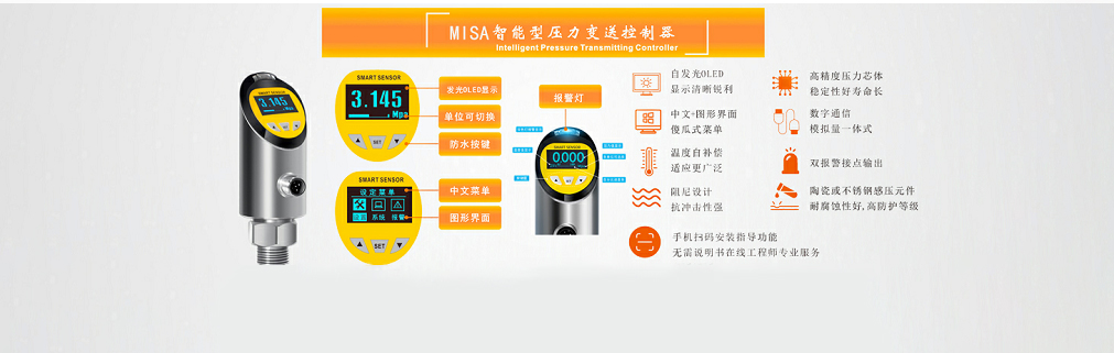 數(shù)顯壓力開關(guān)PK40型 此產(chǎn)品結(jié)構(gòu)緊湊,堅(jiān)固耐用,顯示器外殼可以自由旋轉(zhuǎn)350°,適用機(jī)械設(shè)備不同位置的安裝,廣泛應(yīng)用于各類機(jī)床、泵和壓縮機(jī)、液壓/氣動系統(tǒng)、和機(jī)械設(shè)備制造壓力測量領(lǐng)域。 產(chǎn)品采用高性能的調(diào)理芯片及集成電路,將傳感器毫伏或毫安信號轉(zhuǎn)換成標(biāo)準(zhǔn)電流或數(shù)字信號,還可以快速設(shè)置開關(guān)量信號輸出,可以直接與上位機(jī)、PLC、各類智能儀表及控制監(jiān)測平臺直接通訊。 產(chǎn)品壓力范圍寬:-0.1MPa.0..100MPa.精度可以達(dá)到0.2%FS,產(chǎn)品長期穩(wěn)定性優(yōu)越,穩(wěn)定可靠。